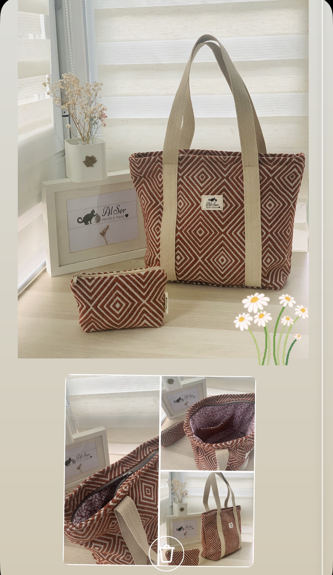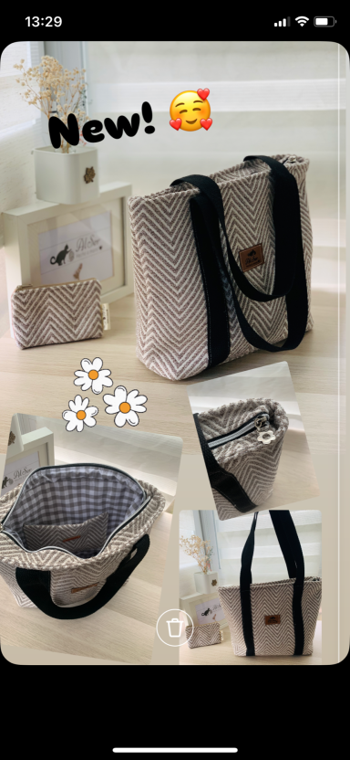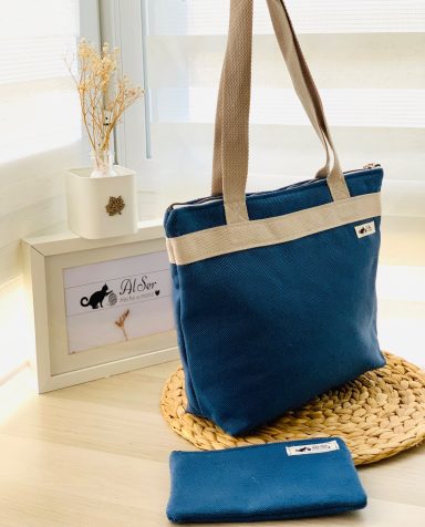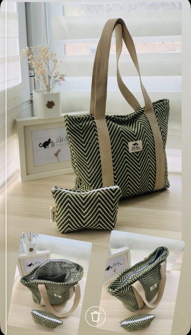 Amplio y comodo de llevar, forrado y con bolsillo interior a juego- (posibilidad de añadir asa larga para llevar colgado. Incluido mini neceser a juego)