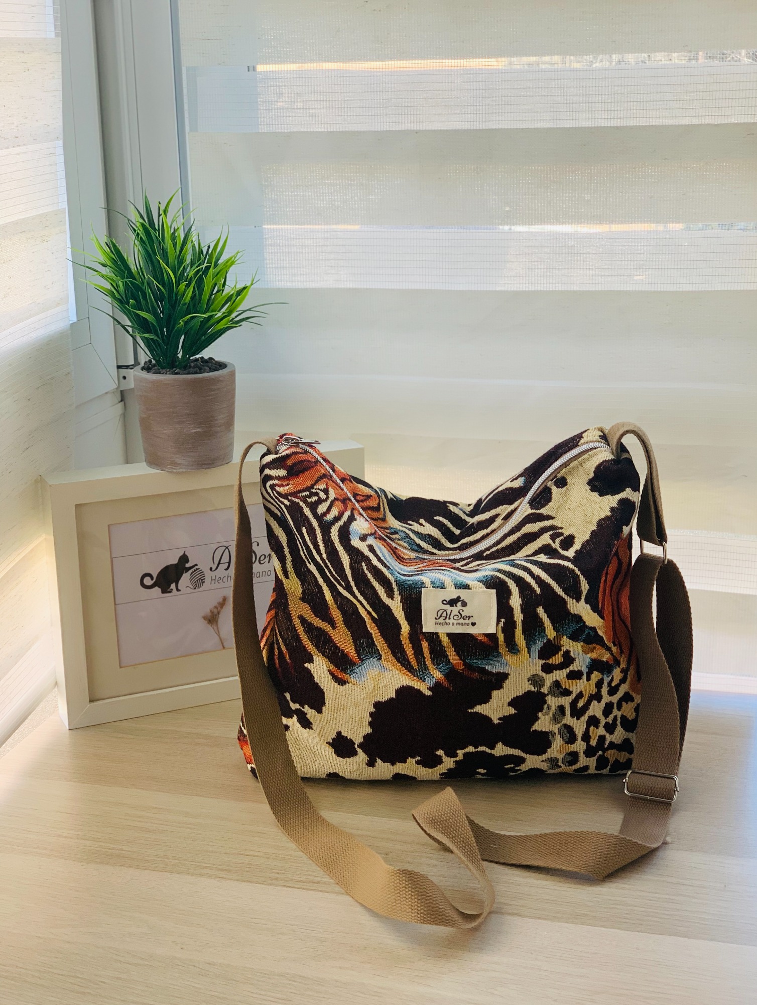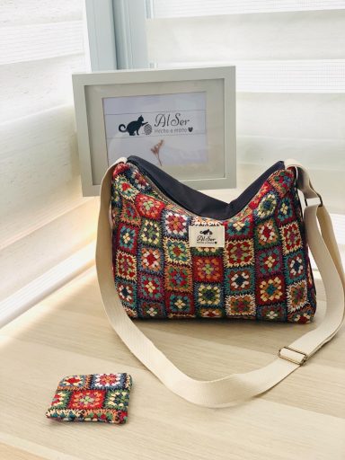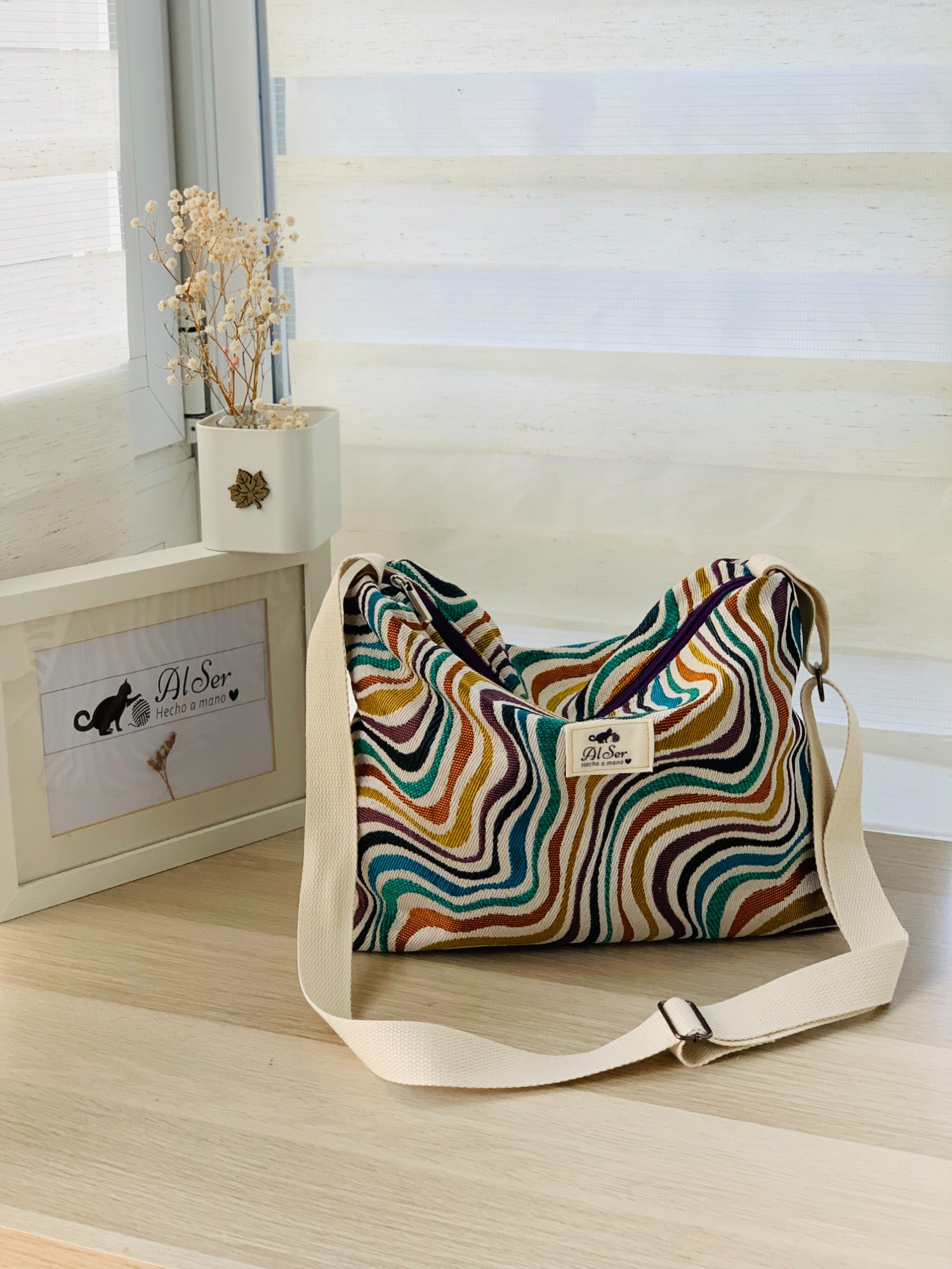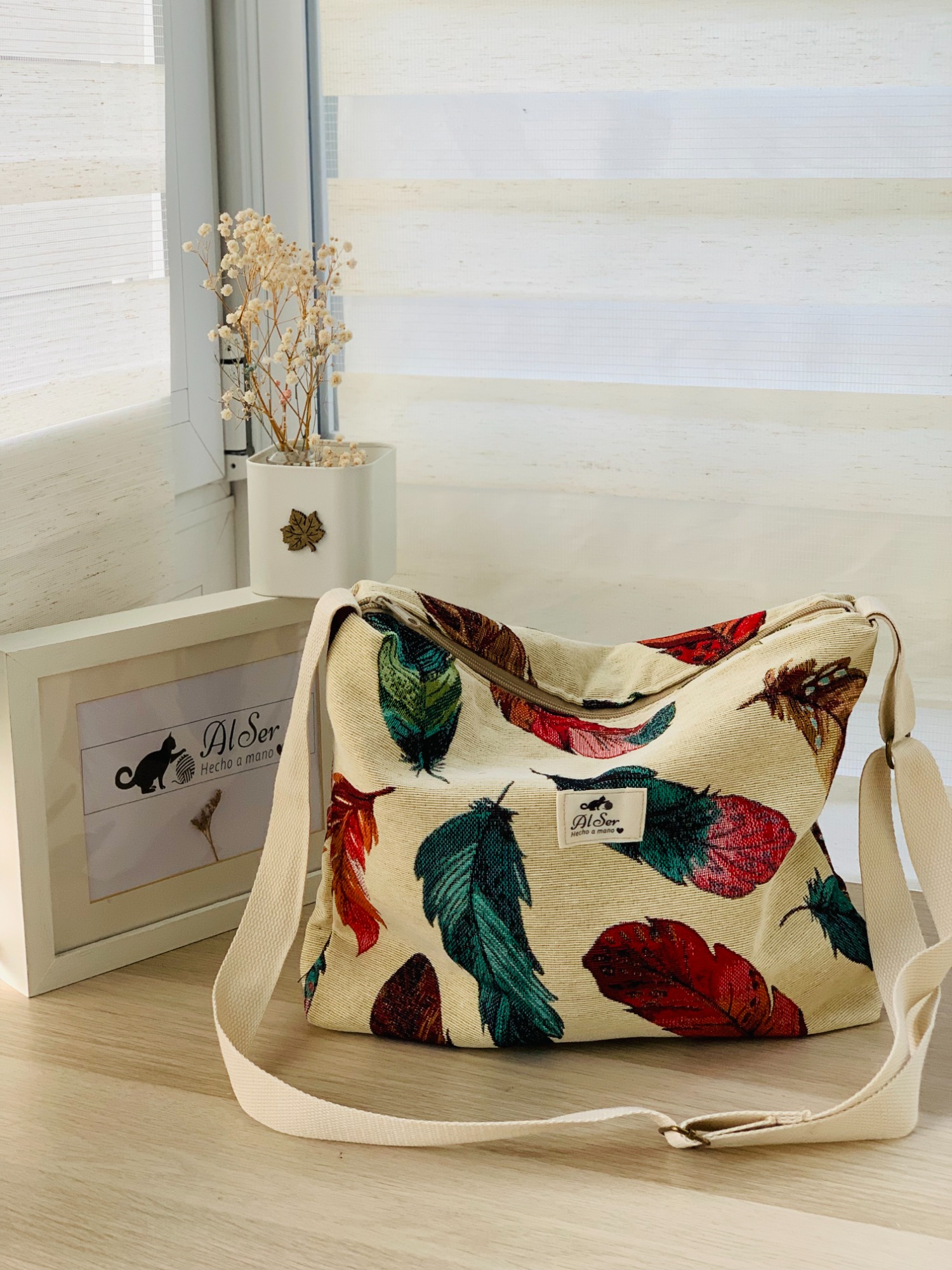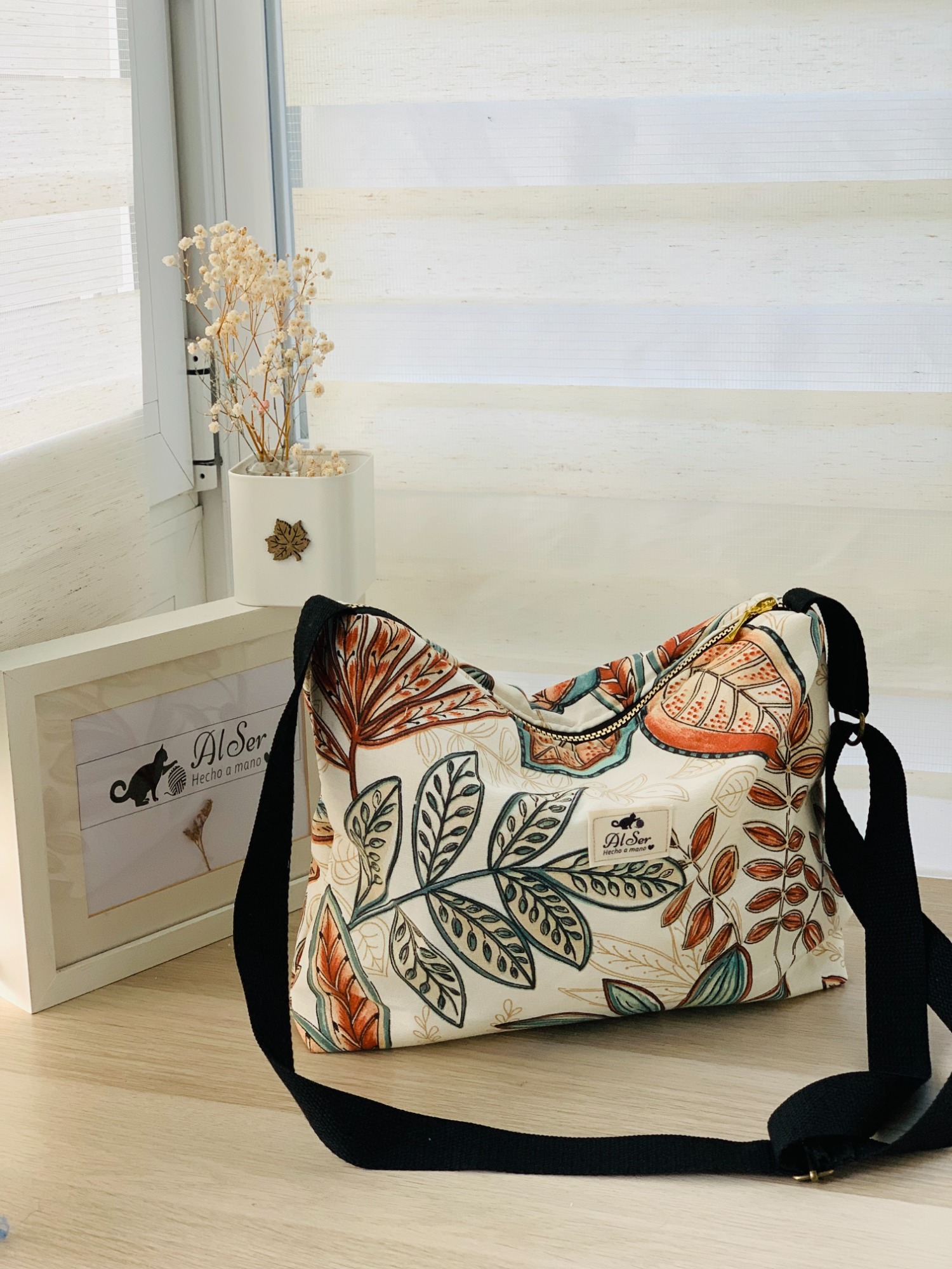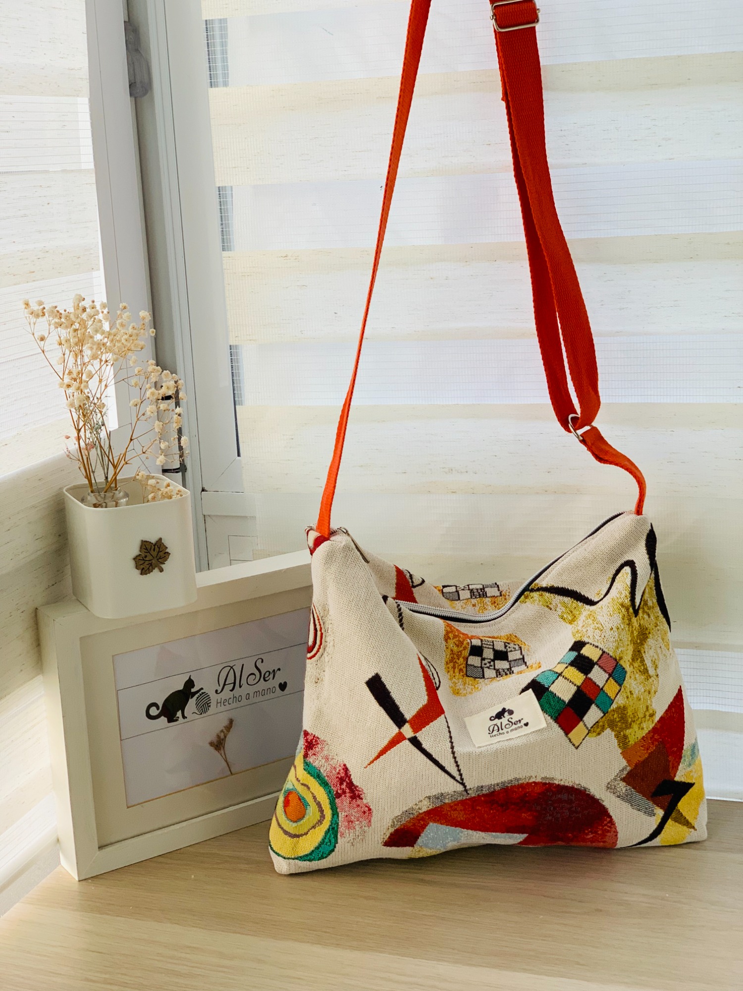 Estos bonitos bolsos, están forrados con telas de algodón 100% llevan bolsillo interior a juego y su asa es regulable, lo que te permite llevarlo como bolso o bandolera.