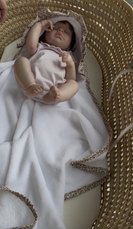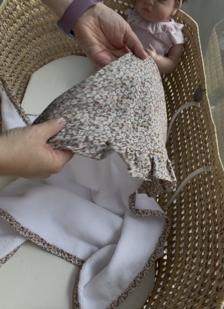 Arrullo de bambú, con volantitos,preparado con tela 100% algodón y tejido de Bambú 100% algodón, extra suave para el cuidado del bebe.