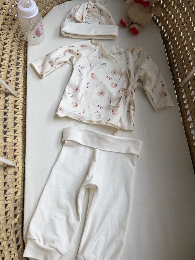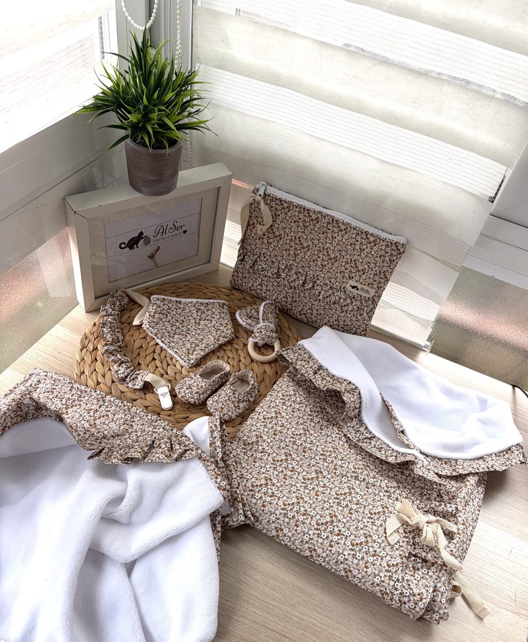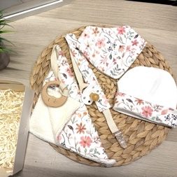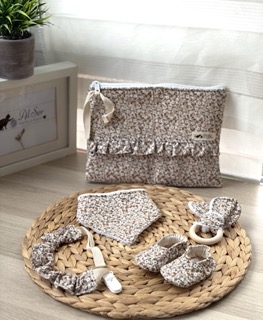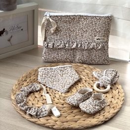 Conjunto con patucos 0-3 meses + mordedor y babero con toalla de bambú+ chupetero