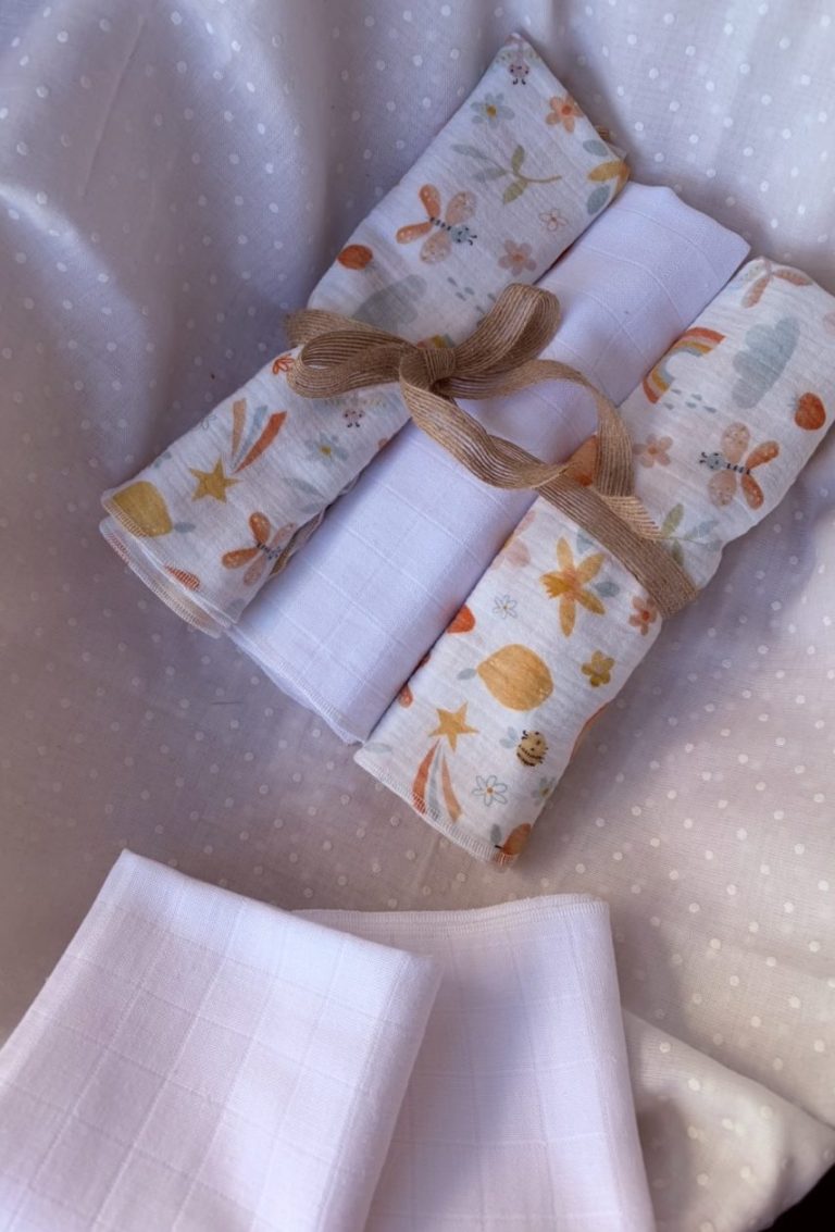 Pack de muselinas estampadas o lisas en blanco, 100% algodón.