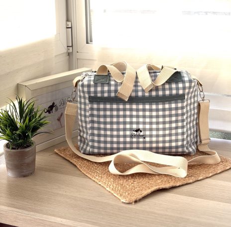 *Bolso amplio para carrito, Acolchado y forrado con telas de algodón, bolsillos interiores(uno con cremallera)y 2 con goma y un bolsillo frontal.