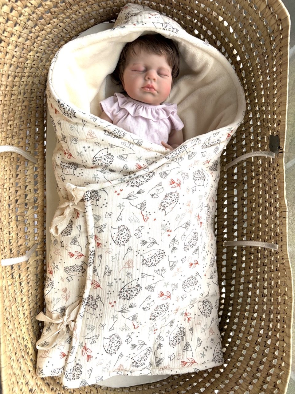 Arrullo acolchado en tela 100% algodon de muselina y tela coralina.