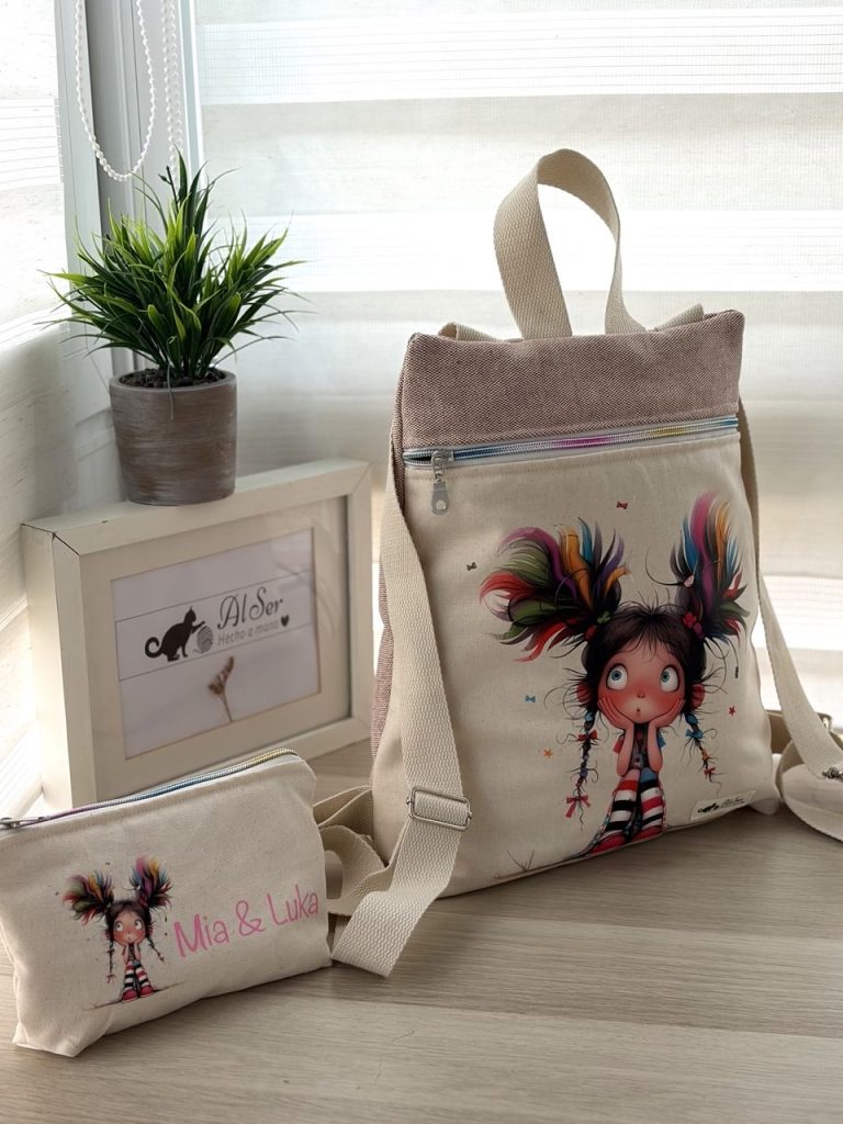 Este mes, estrenamos nuevo modelo de mochila,donde podrás elegir entre varios estampados y colores de telas.