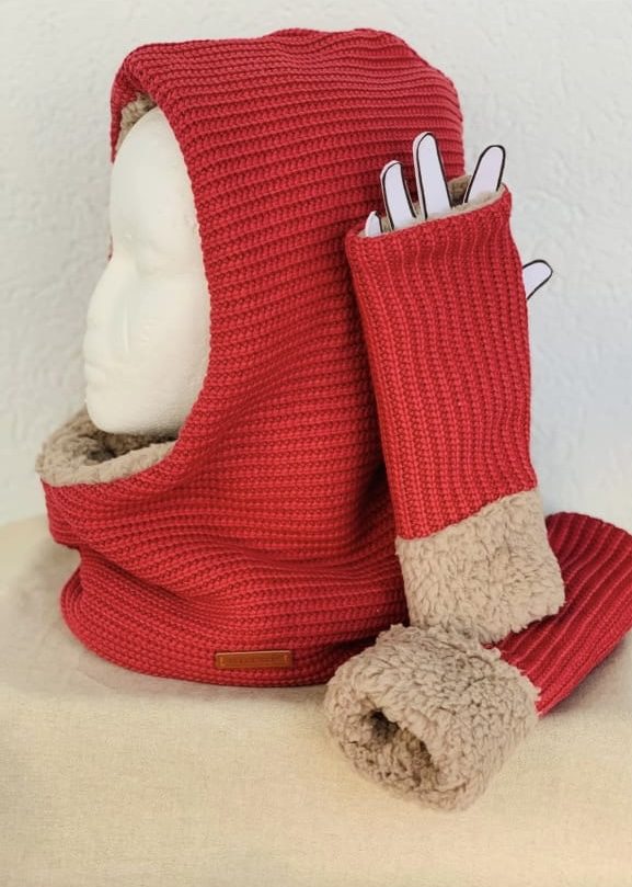 Un 2 en 1, que no puedes pasar por alto, realizado en telas de imitación a punto, forrados con borreguito o forro polar. Ideal para regalar o ir abrigadito este invierno. (tamaño infantil y adulto)