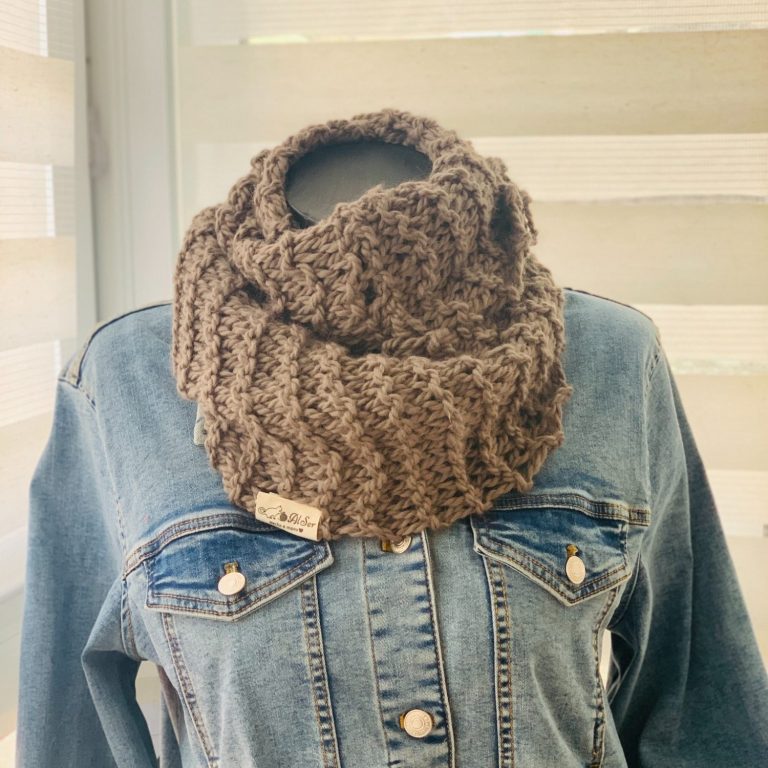 Cuello doble de lana tejida a mano, de Alpaca, una lana que no pica y de alta calidad , destacando su suavidad. Con un punto grande que lo hace muy esponjoso.